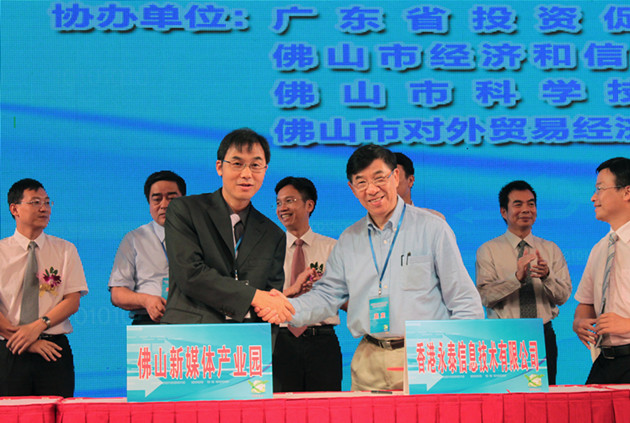 Anther project is the cooperation between Foshan New Media Park and Dr Peng Group. Chairman Xinliang Li and The chairman of Dr.peng Lu Han sign the contract about the investment of 1 billion yuan to build cloud computing application in New Media Park.