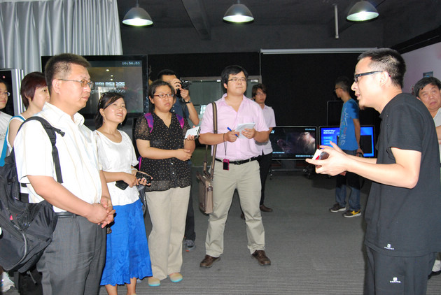 Later, an informal forum was held in VIP room, a manager gave a brief introduction on the Park’s development orientation to the panel, who thought highly of all the hard work in the last 2 years. Mr. Zhao Tianxiao, Journalism and Communication Research Institute Director of CASS, noted: We have been to Zhejiang Province and Jiangsu Province to learn about the real situation on new media technology applications, and we found that new media technologies are mostly limited to video production and animation design. It is such a surprise that Foshan New Media Park combines new media technologies with traditional manufacturing industries in such a perfect way.