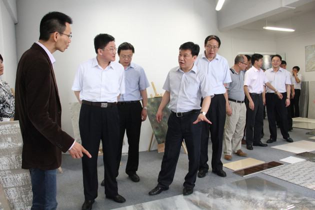 ![]() 张书记对园区新媒体技术服务于佛山制造业的战略定位表示赞赏 在佛山市派的科技有限公司,考察团一行参观了公司的设计成品展厅,派的科技董事长丘广安向张光峰书记一行介绍了云设计项目:针对建筑陶瓷、家具等行业进入数字化喷墨时代,创新图案、色彩、肌理设计,建立云设计数据中心,将前端设计与后续生产紧密结合。