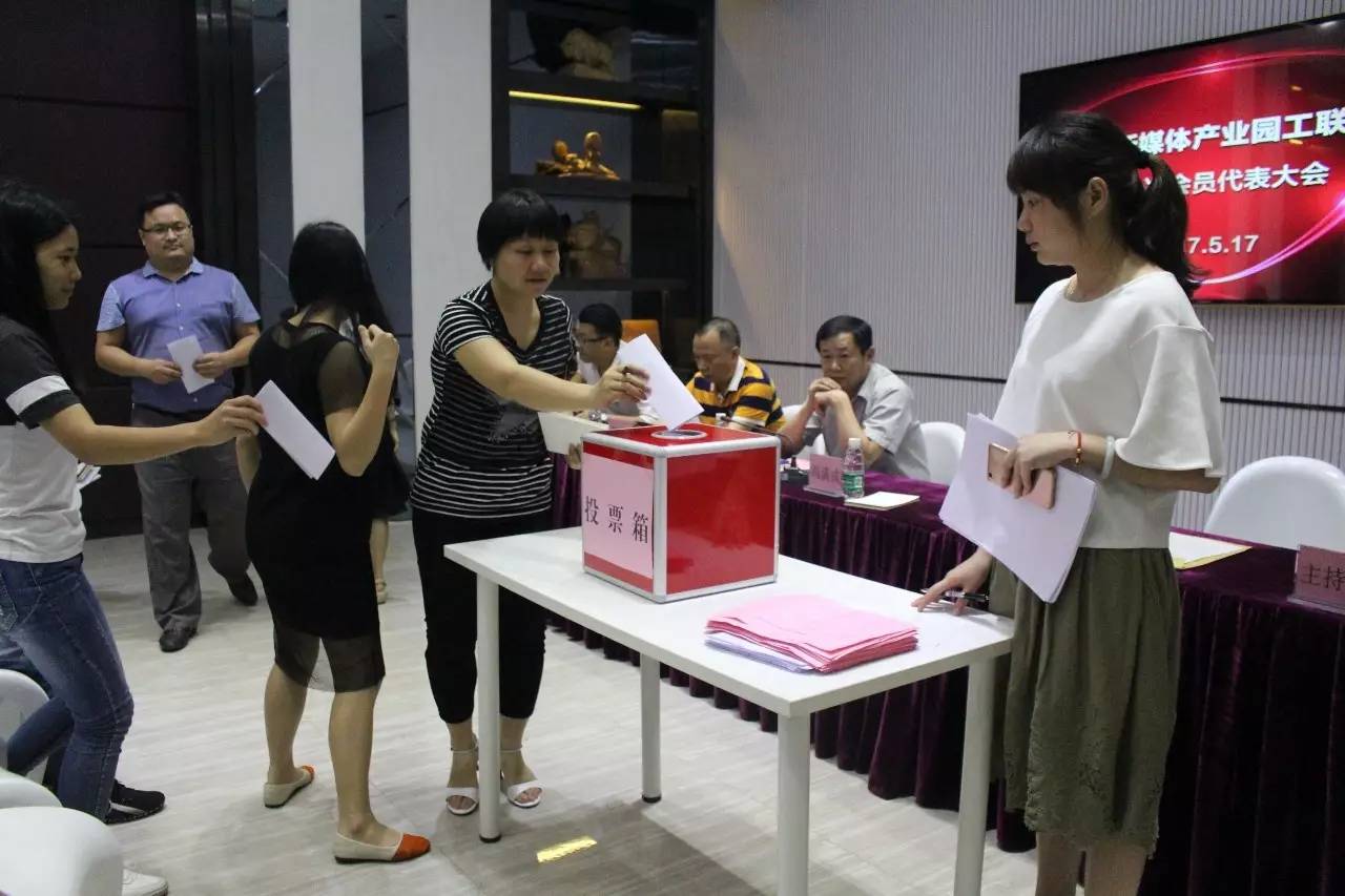 最终投票选举出10名新媒体产业园工联会成员,其中王远江当选工联会主席,李国兴当选工联会副主席兼经费审查委员会主任,钟雪群当选女职工委员会主任,朱少华、周其博、赖昌来为工联会委员,李新成、喻向科为经费审查委员会委员,梁彩梅、谭燕为女职工委员会委员。