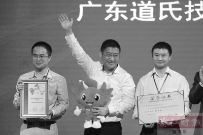 ■获得大奖“金土奖”的企业代表开心地展示证书。